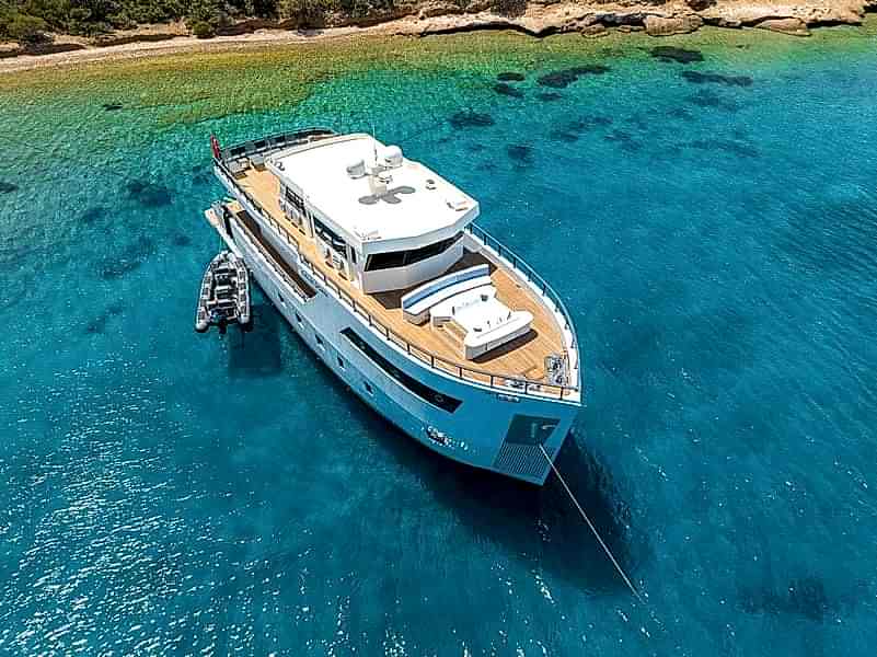 Calm Down yacht features a sleek appearance both inside and out. Built in 2023, this 30-meter-long yacht promises an unforgettable cruising experience, with luxury and elegance at every step. Step on board and you will find 6 magnificent cabins, each meticulously built to seat up to 12 passengers.