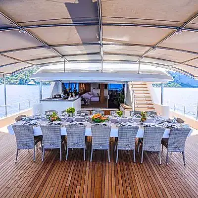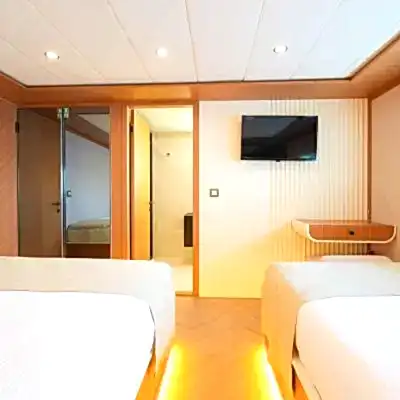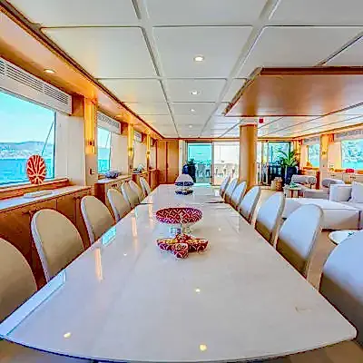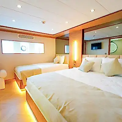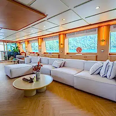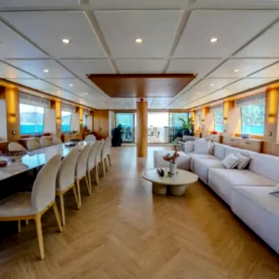 A stunning example of elegance and comfort in the motorsailer category, this unique yacht was newly launched in 2024. Stretching 50 meters in length, her features 10 luxurious cabins—8 doubles and 2 triples—welcoming up to 22 guests onboard. Designed for those who dream of the ultimate yacht holiday experience, every detail is crafted for comfort, from the modern en-suite bathrooms to the air-conditioning systems in each cabin. The spacious indoor and outdoor living areas ensure you feel completely at home while sailing the seas.