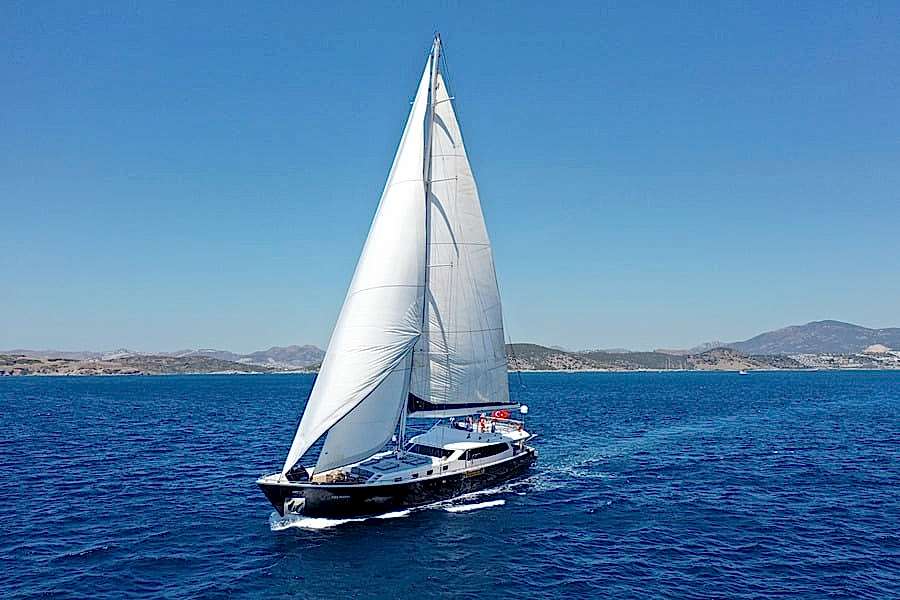 Additionally, unfurling its sails while underway provides guests with a unique sailing experience. Although built in 2013, the boat underwent a comprehensive refurbishment in 2023, essentially becoming a new vessel. Thus, “Gulmaria” promises her guests an unforgettable maritime holiday, combining modern comfort with traditional maritime experience.