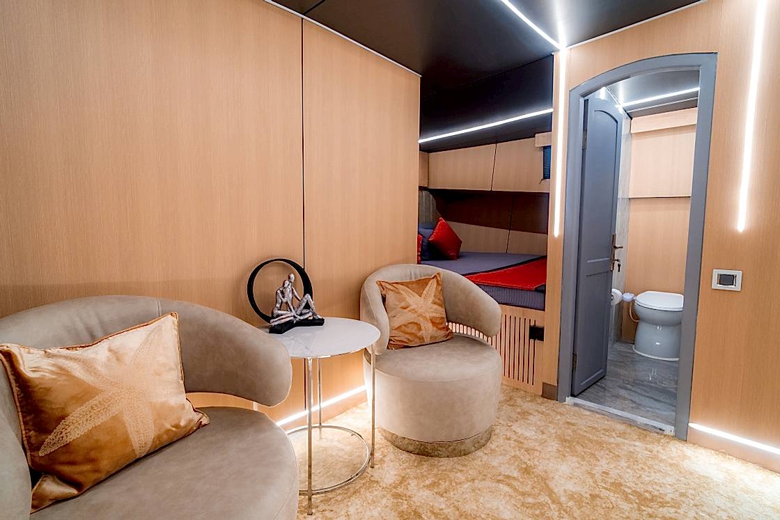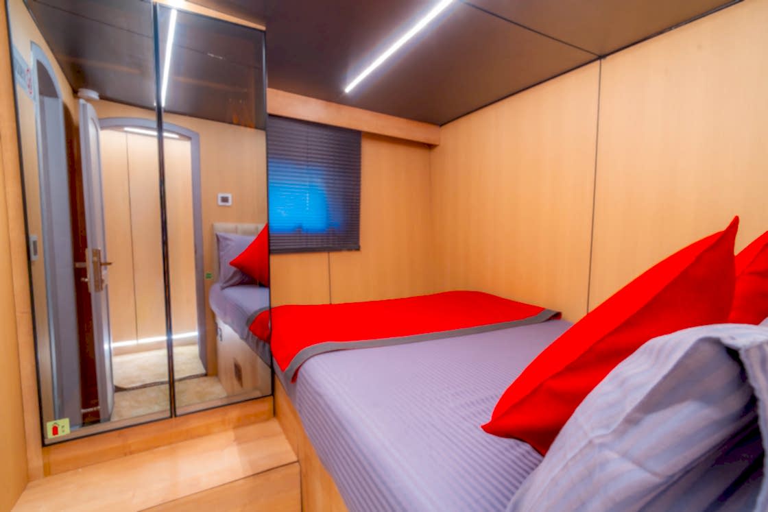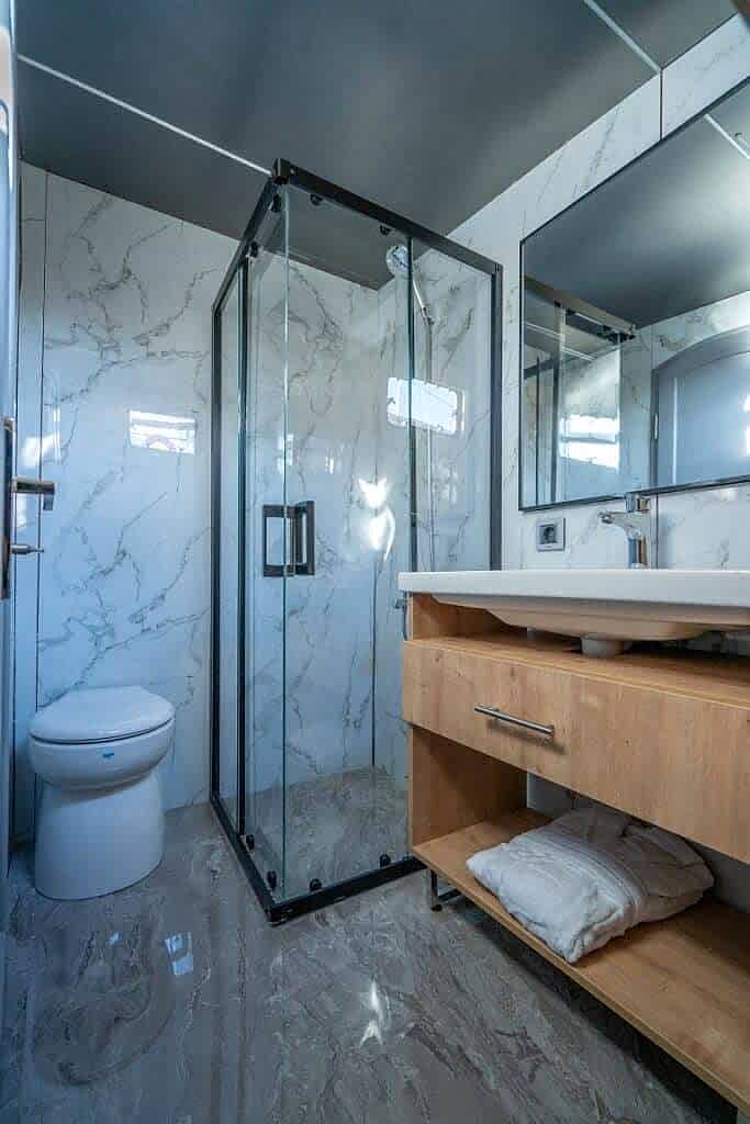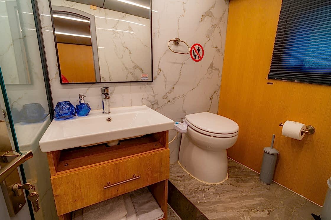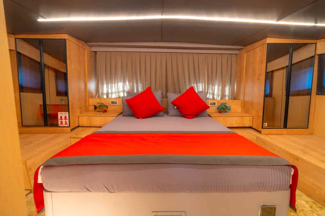 Princess Alize Gulet, measuring 29 meters, offers an unforgettable sailing experience with six cabins for up to 12 guests. Two master suites, two double, and two twin cabins provide private comfort, each equipped with en-suite bathrooms and 24-hour air conditioning.