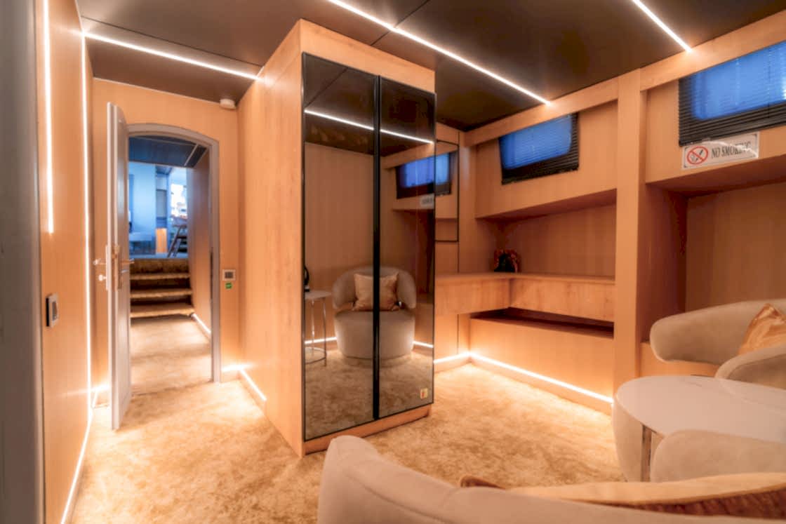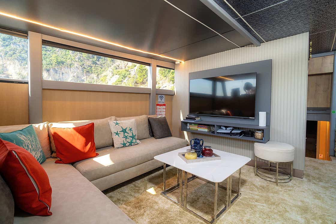 Onboard amenities include unlimited Wi-Fi, Bluetooth speakers, and a fully stocked service bar. Every detail is designed for both relaxation and entertainment on the water. For adventurous spirits, the yacht features a wide variety of water sports: ringo, waterskiing, wakeboarding, paddleboarding, canoeing, snorkeling, masks, and fins. Whether you seek thrills or tranquil fun, Princess Alize offers it all.