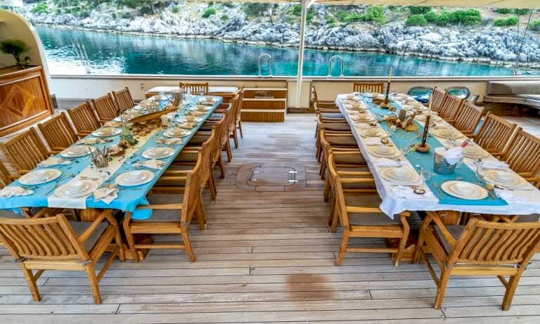 What truly sets Tersane 8 apart is her dedicated and highly experienced crew of 10. Known for their warm hospitality, professionalism, and attention to detail, the team works tirelessly to ensure your cruise is nothing short of exceptional. They take great pride in maintaining a clean, safe, and welcoming environment — always with a smile, and always ready to assist.